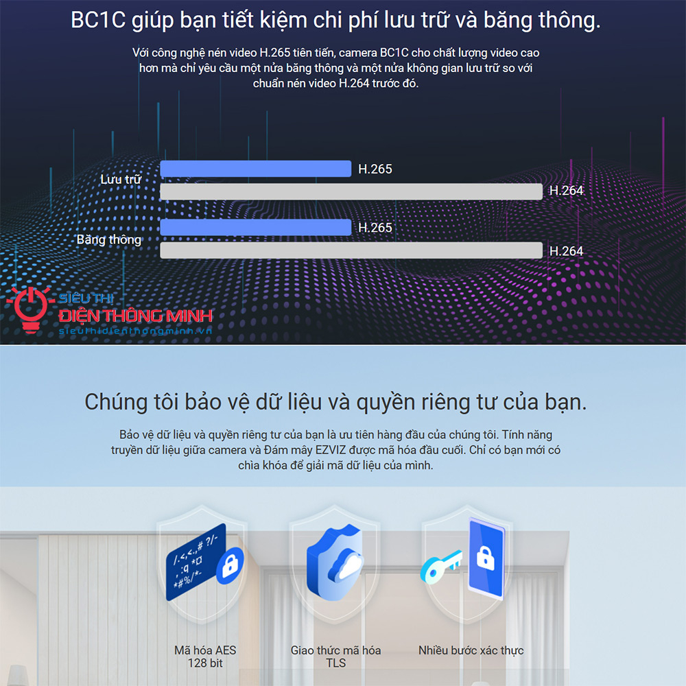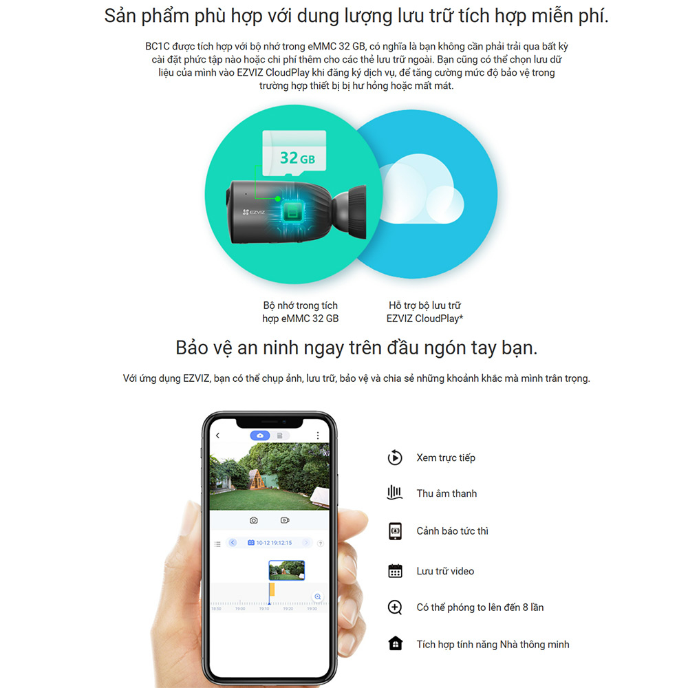 - Cài đặt wifi thông minh với phần mềm EZVIZ - quá trình cài đặt chỉ mất vài phút với người lần đầu sử dụng - tần số 2.4GHz