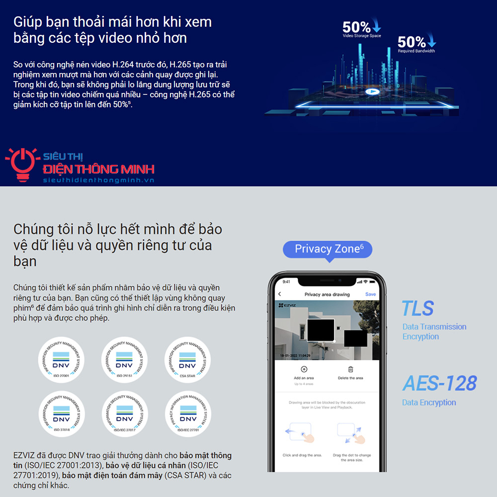 - Cài đặt wifi thông minh với phần mềm EZVIZ - quá trình cài đặt chỉ mất vài phút với người lần đầu sử dụng