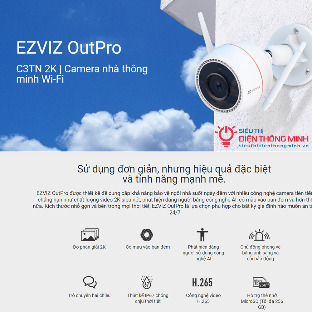 Camera EZVIZ C3TN OutPro 3MP (Thân Wifi 3MP, góc rộng, loa + mic, đêm có màu)