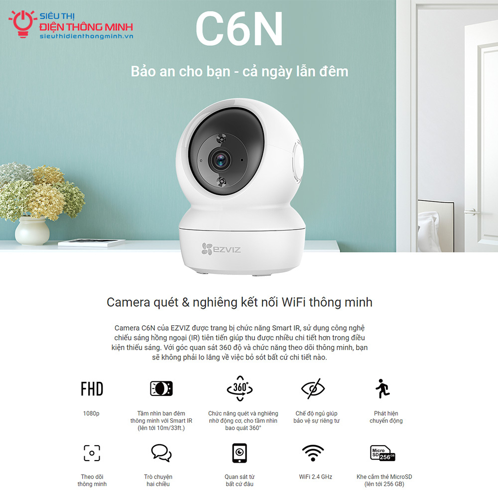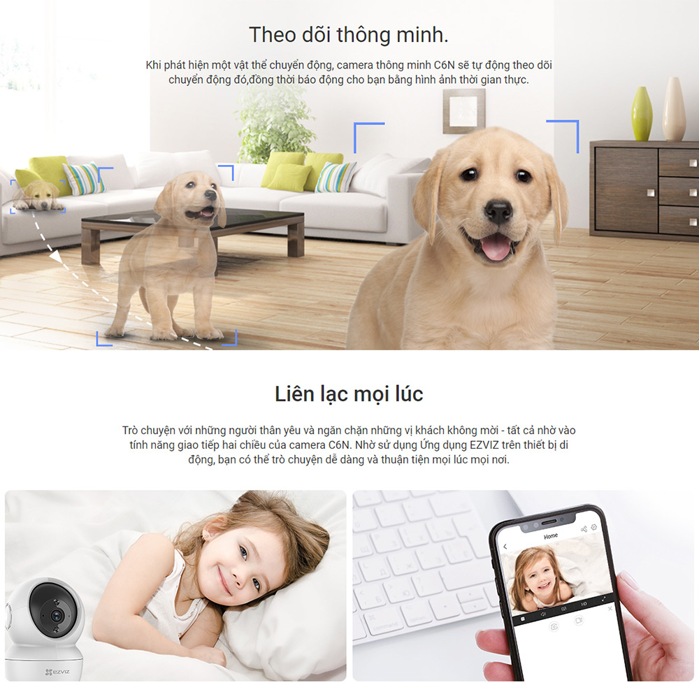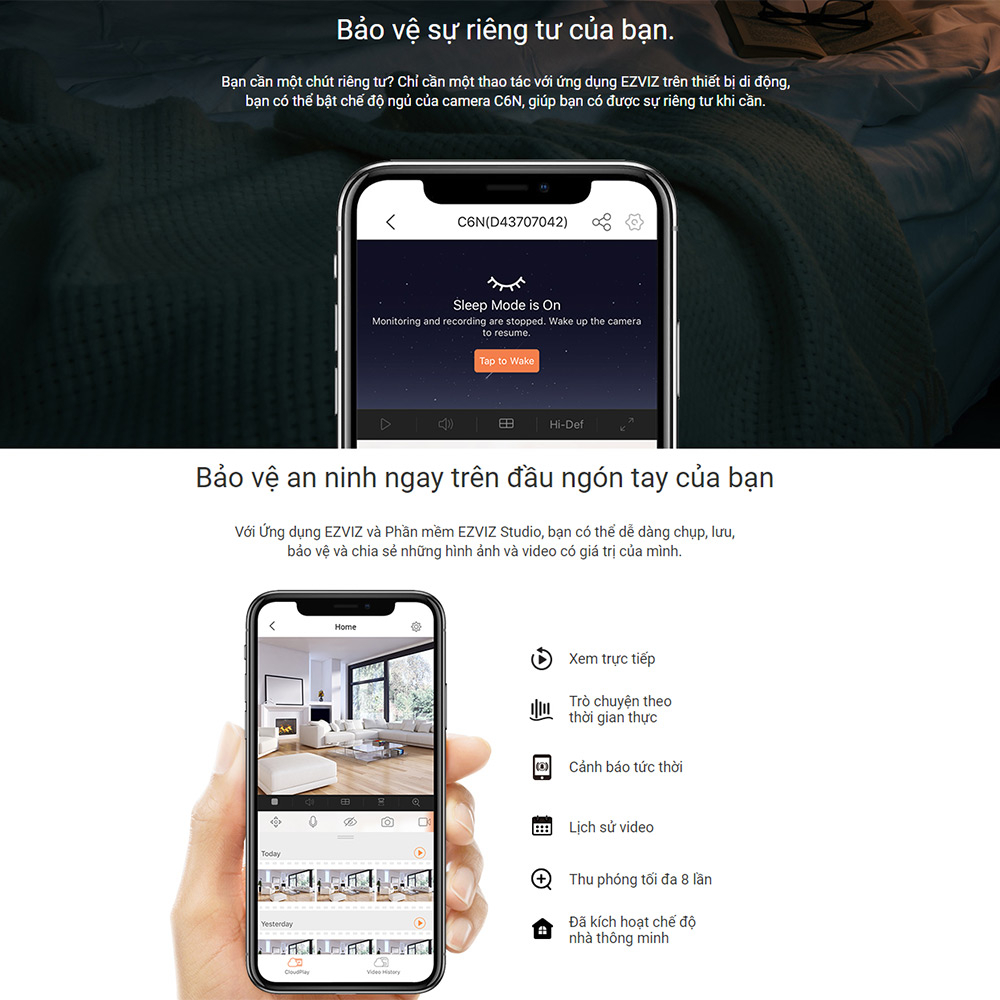 - Hỗ trợ wifi + cài đặt wifi thông minh với phần mềm EZVIZ - quá trình cài đặt chỉ mất vài phút với người lần đầu sử dụng