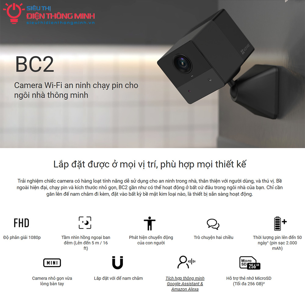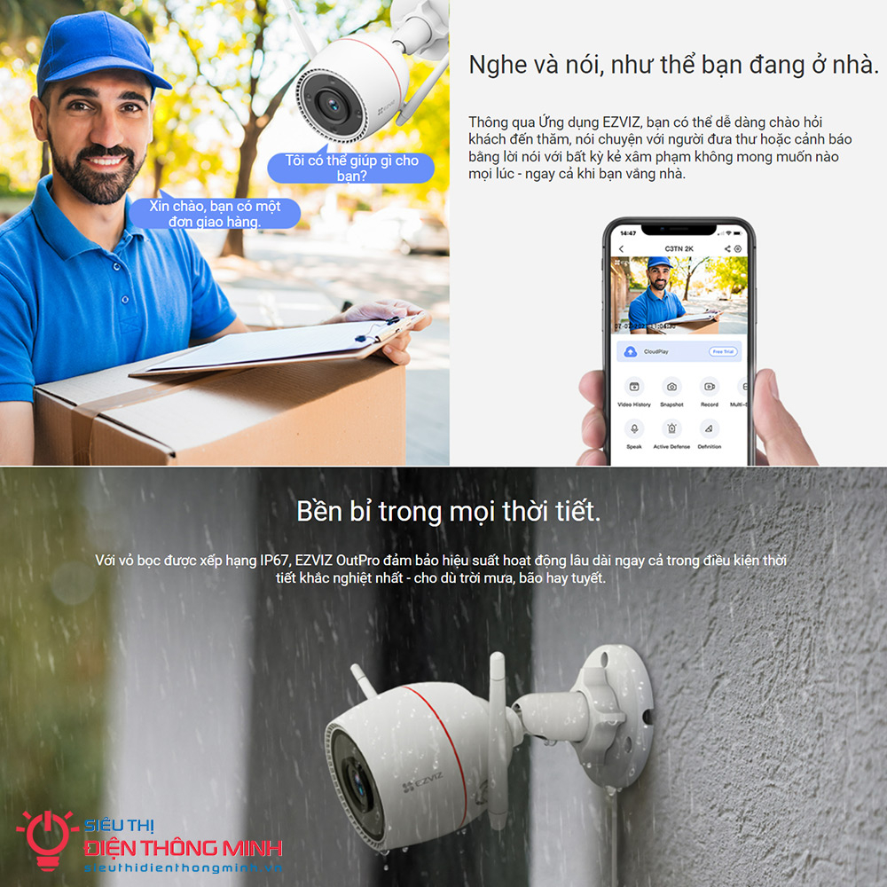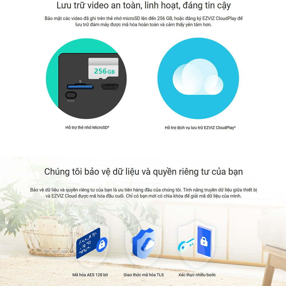 - Hỗ trợ WiFi + cài đặt WiFi thông minh với phần mềm EZVIZ - quá trình cài đặt chỉ mất vài phút với người lần đầu sử dụng