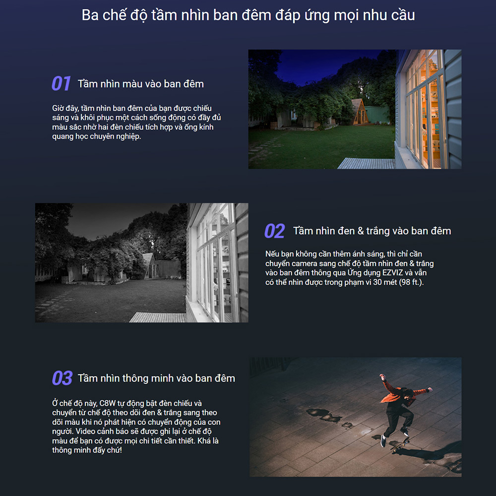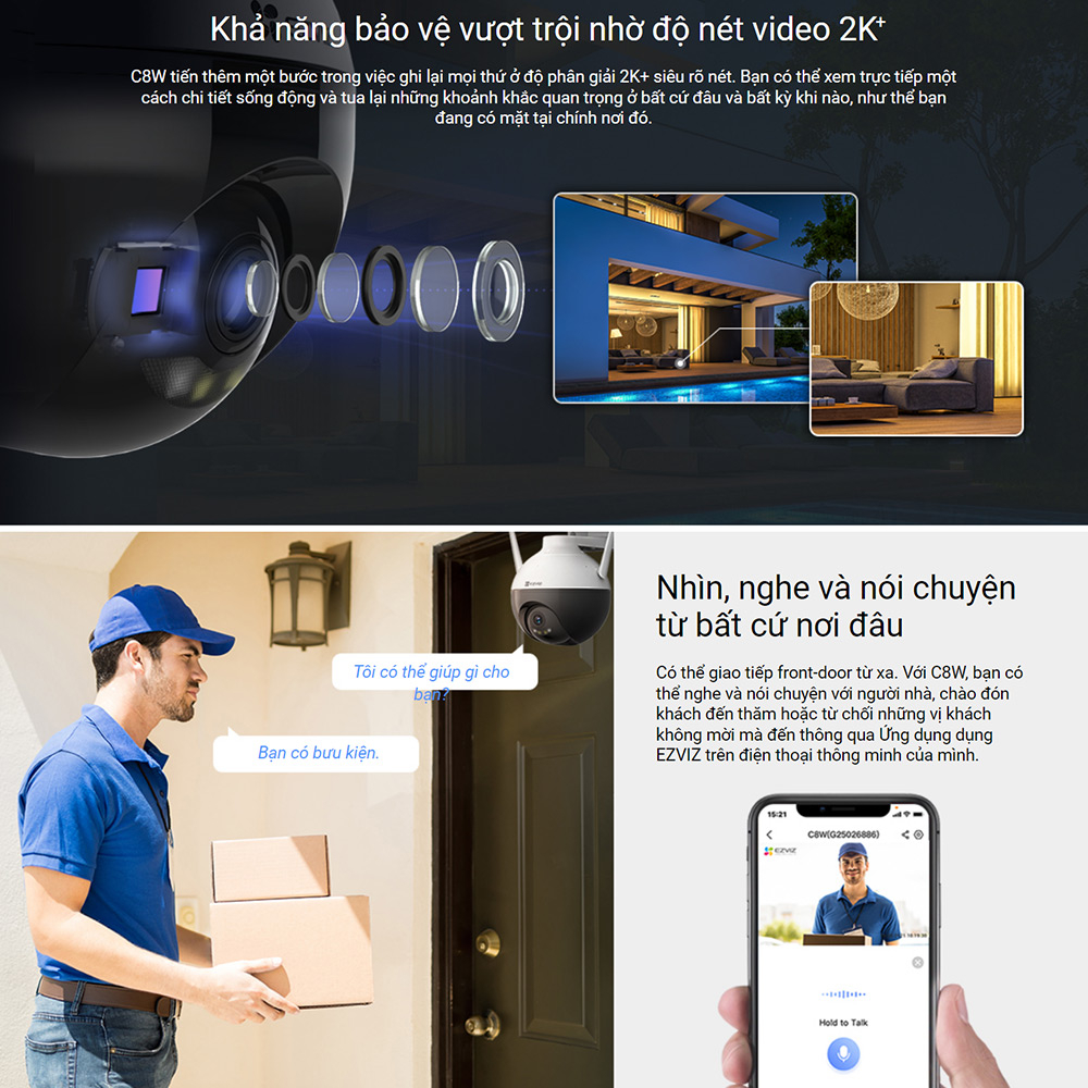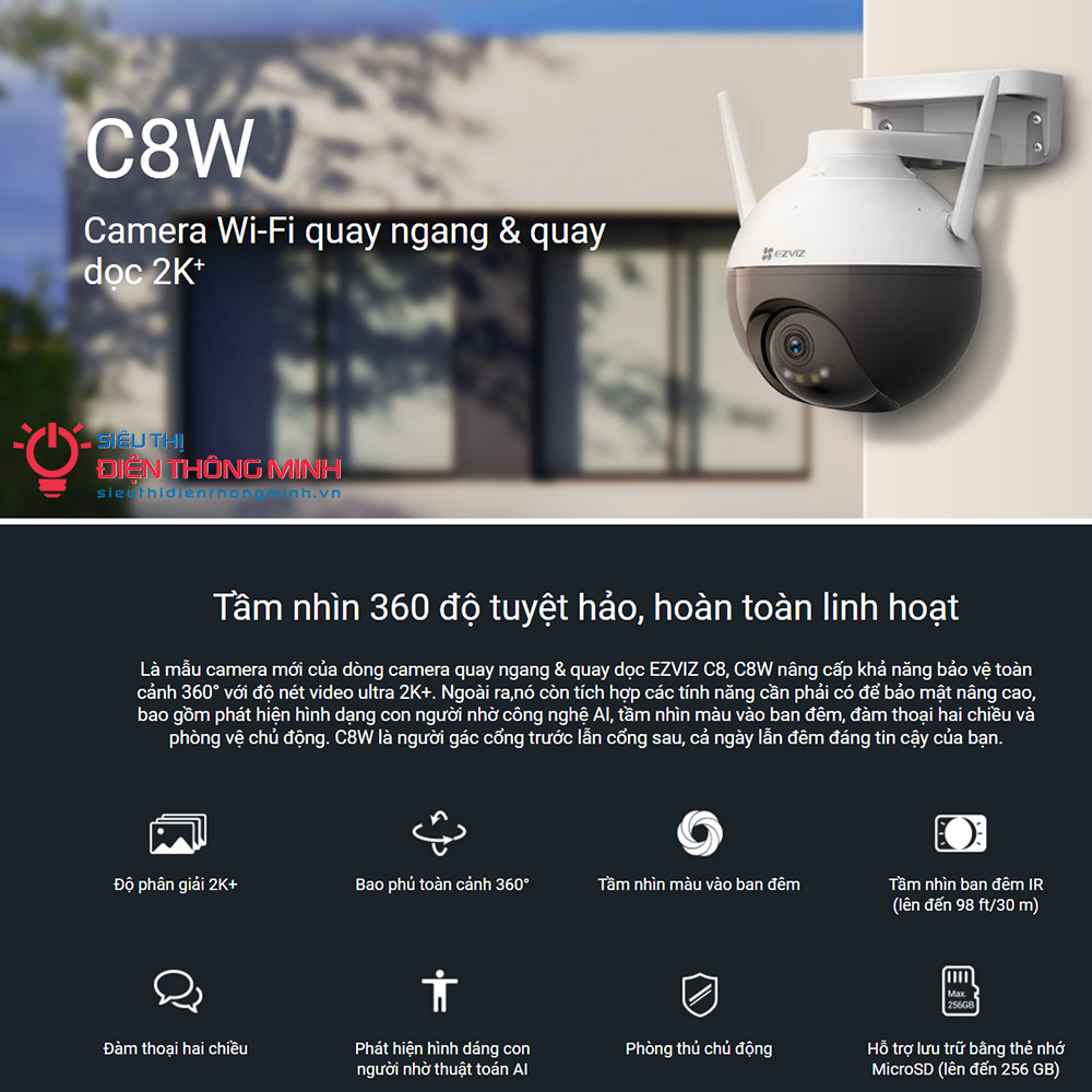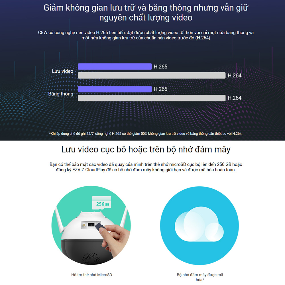 - Hỗ trợ WiFi + cài đặt WiFi thông minh với phần mềm EZVIZ - quá trình cài đặt chỉ mất vài phút với người lần đầu sử dụng
