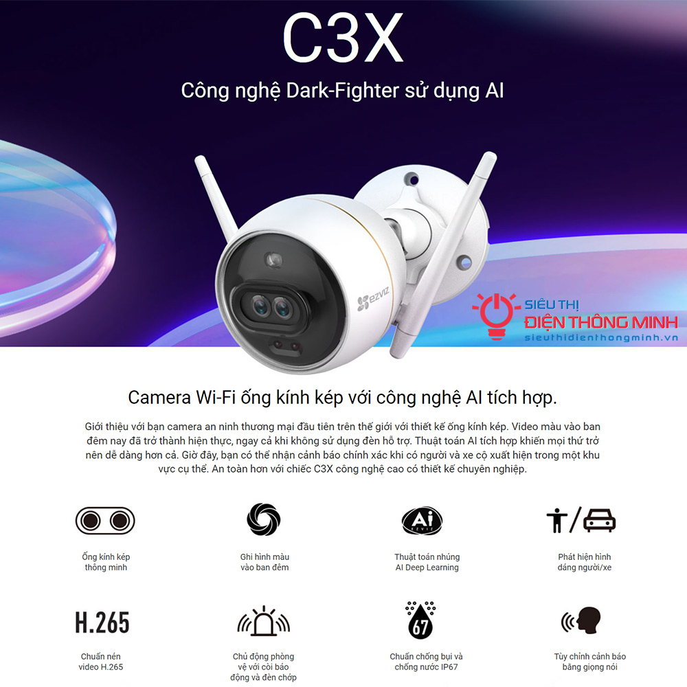 - Hỗ trợ WiFi + cài đặt WiFi thông minh với phần mềm EZVIZ - quá trình cài đặt chỉ mất vài phút với người lần đầu sử dụng