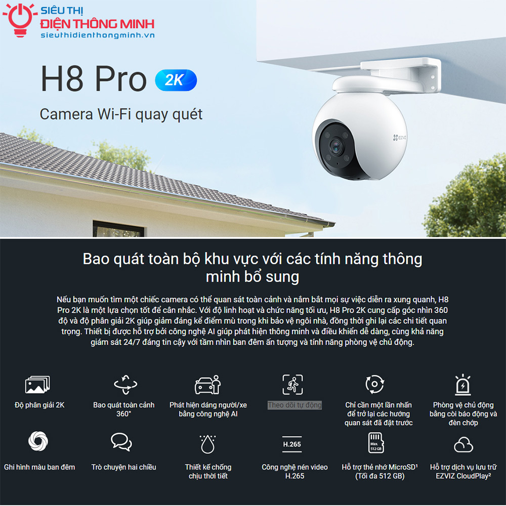 - Hỗ trợ WiFi + cài đặt WiFi thông minh với phần mềm EZVIZ - quá trình cài đặt chỉ mất vài phút với người lần đầu sử dụng