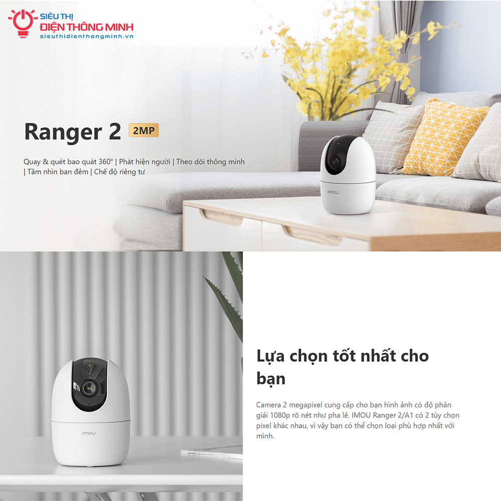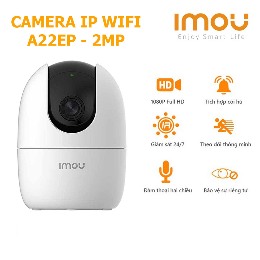 Camera IMOU IPC-A22EP (Ranger 2) là sản phẩm bán chạy nhất thị trường camera Wifi nhiều năm liền. Có thể nói IMOU IPC-A22EP là sản phẩm "Camera Quốc dân" được lựa chọn nhiều nhất để phục vụ giám sát an ninh cho Gia đình, Cửa hàng, Văn phòng. Sản phẩm được thiết kế để lắp đặt trong nhà, được trang bị rất đầy đủ các tính năng cần có của một camera Wifi thông minh. Độ nét chuẩn Full HD1080P cho khả năng quan sát rõ nét. Tính năng quay quét giúp khách hàng điều khiển ngay trên điện thoại quay quét tới bất kỳ vị trí nào. Camera cũng có khả năng tự quay quét bám đuổi theo các đối tượng chuyển động để giám sát toàn diện. Sản phẩm hỗ trợ cả kết nối Wifi và cắm mạng LAN. Tích hợp đầy đủ mic và Loa để ghi âm và đàm thoại hai chiều. Lưu trữ với khe cắm thẻ nhớ hoặc lưu trữ đám mây. IPC-A22EP cũng có thể lắp đặt thành hệ thống kết nối với đầu ghi để lưu trữ tập trung và quản lý số lượng nhiều camera.