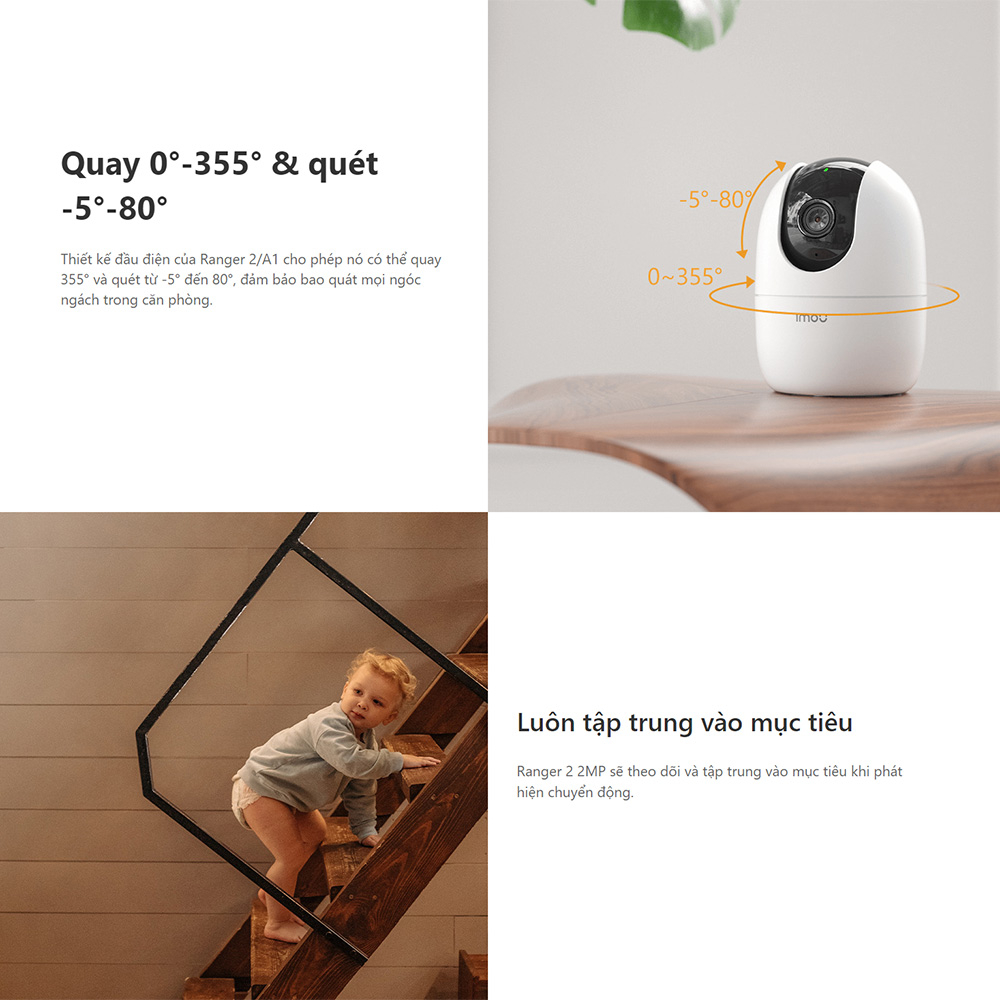 - Tính năng phát hiện người, phát hiện tiếng ồn, phát hiện chuyển động, theo dõi thông minh